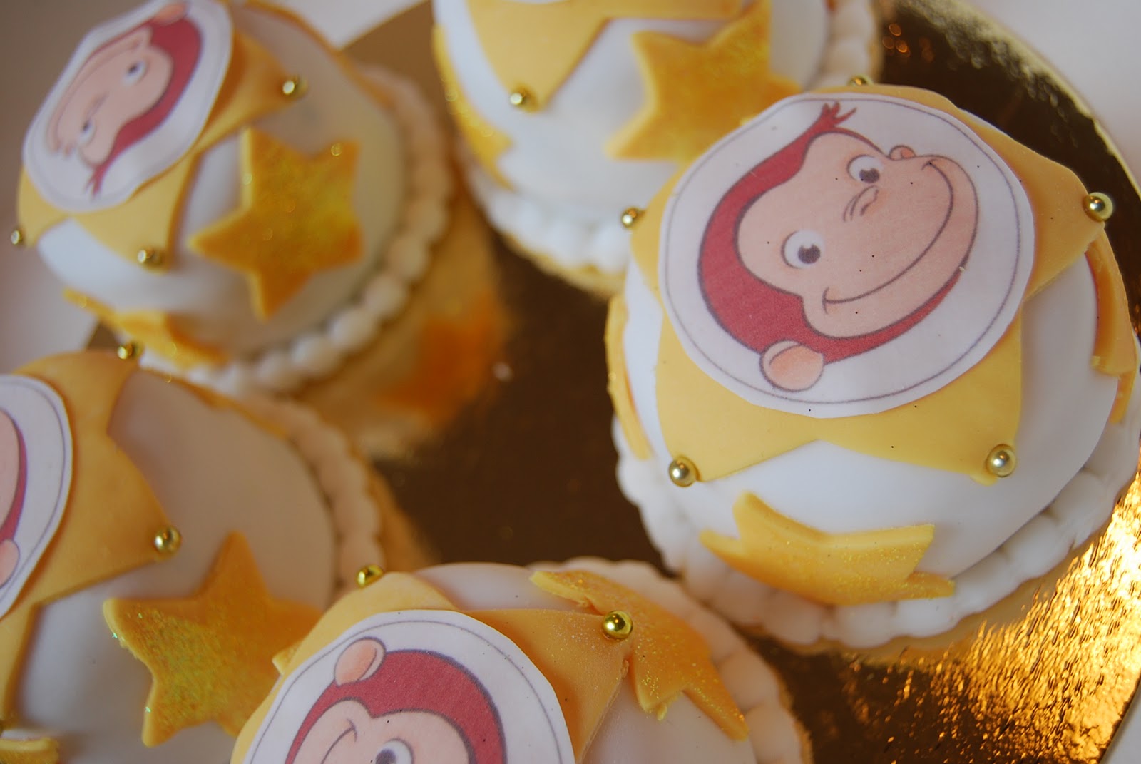 Vill ju givetvis också gärna visa bakelserna som också skulle iväg till Karlshamn! Det blev små Nicke Nyfiken-bakelser med glittriga stjärnor på.