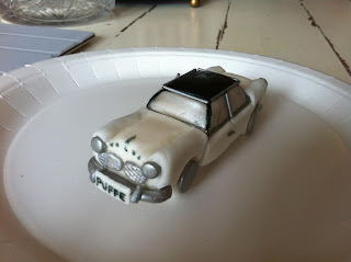 Nu är dock bilen klar och jag är ganska nöjd med tanke på att det är första gången EVER jag modellerar en bil. Man ser ju vad det är i alla fall. Och en av läsarna skrev igår att hennes kille faktiskt såg att det var en Amazon utan att veta att det var det det skulle vara. Så...jag känner mig nöjd!